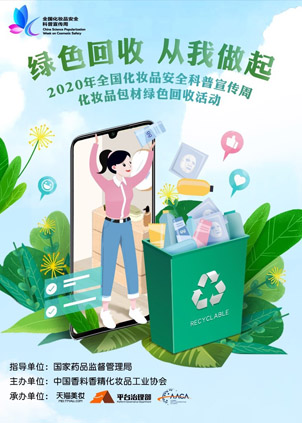 5月29日,由国家药品监督管理局指导,中国香料香精化妆品工业协会主办、阿里巴巴集团承办、日化最前线协办的“化妆品包材绿色回收线上发布会”通过网络视频直播的形式成功举办,正式开启为期一个月的化妆品包材绿色回收活动。