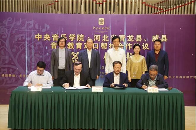 9月23日,中央音乐学院与河北省青龙满族自治县、威县音乐教育对口帮扶合作协议签约仪式在中央音乐学院举行。应中央音乐学院商请,中国乐器协会组织4家会员企业针对青龙县和威县的具体需求捐赠古筝、琵琶、二胡、笛子,共计300余件。