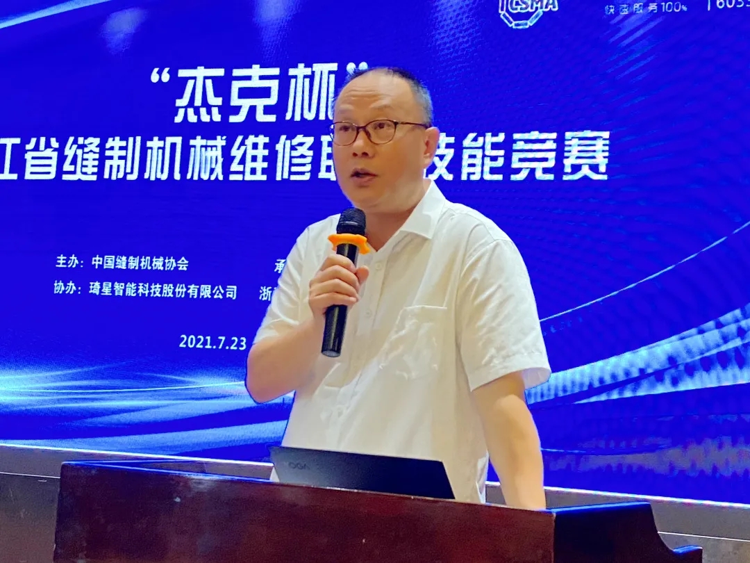 林建龙副理事长代表协会致开幕辞,他表示在国家技能人才建设总体指引下,行业有效开展职业培训,高技能人才总量稳步扩大,人才结构持续改善。大赛的成功举办,搭建了缝制机械行业和服装加工企业设备维护技术交流的平台,激励了广大缝制机械维修钻研业务,促进了缝制机械维修人才队伍的建设,在全行业形成了尊重技能和技能人才的良好氛围。他希望参加此次比赛的选手利用好平台,赛出水平,赛出风采,展现当代工匠精神。