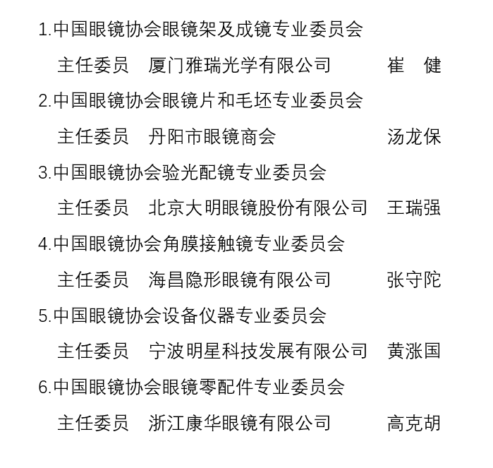 中国眼镜协会部分专业委员会