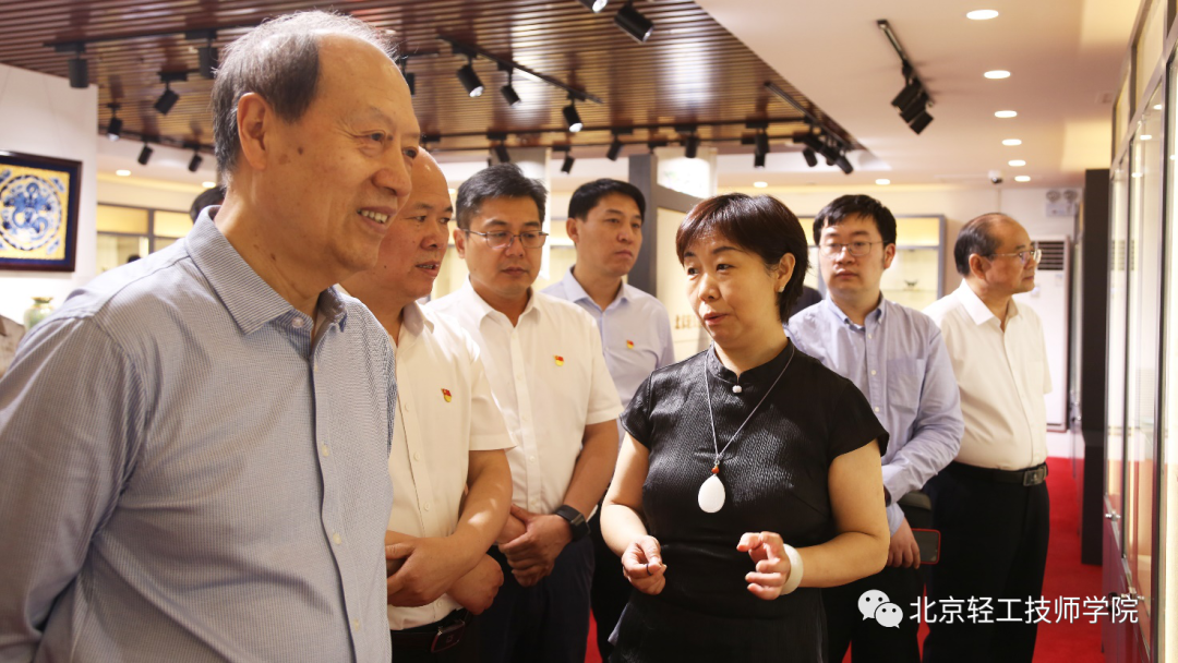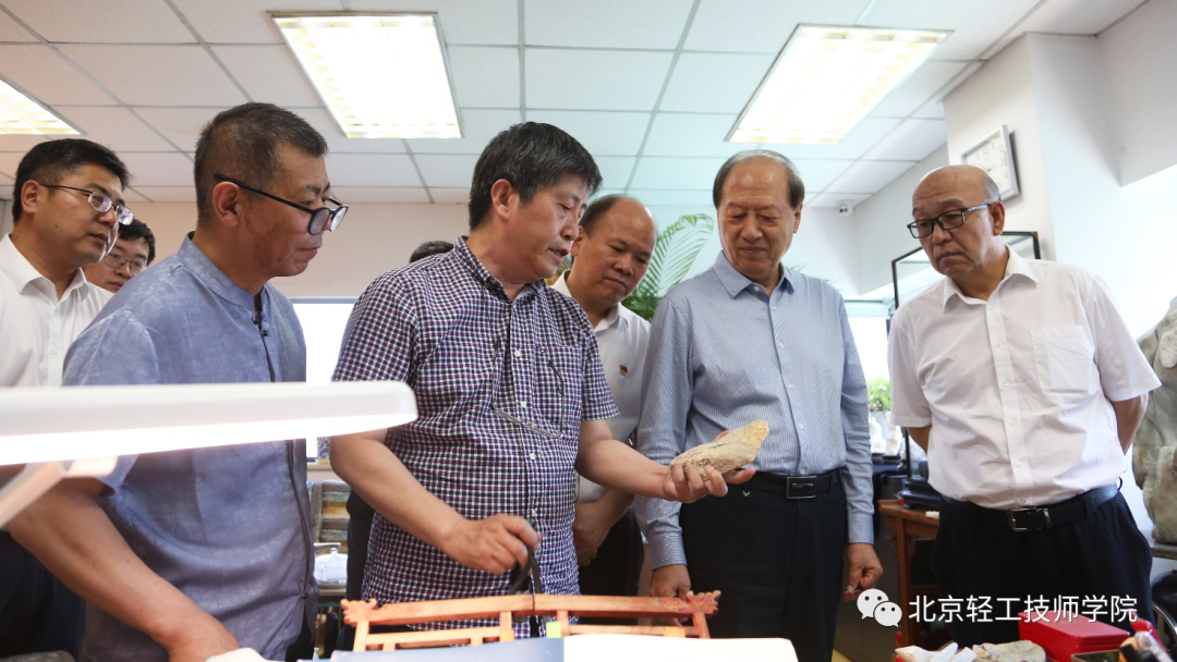接下来,王世成书记一行前往学院天桥教学区参观调研,参观了苏然大师工作室(玉雕)、李春柯大师工作室(牙雕)、崔奇铭大师工作室(玉雕)、万紫大师工作室(金漆镶嵌)、于鸿雁大师工作室(烫蜡)、郑道全大师工作室(玉雕),走进花丝镶嵌实训室、景泰蓝实训室、雕漆实训室、京绣实训室、宫毯实训室、木雕实训室、内画实训室等实训教学基地,并参观了工艺美术作品展览室。