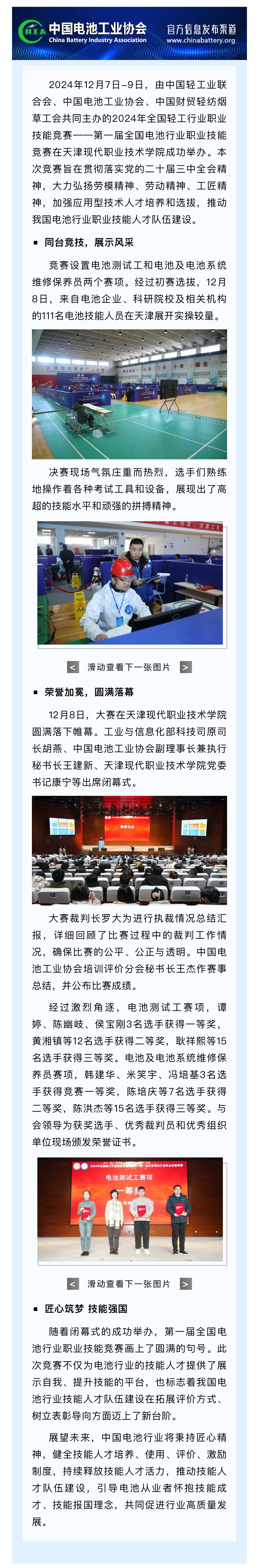 2024年全国 职业技能竞赛——第一届全国电池行业职业技能竞赛决赛在天津成功举办