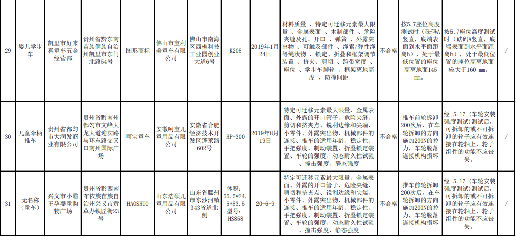 贵州省市场监管局:9批次童车不合格