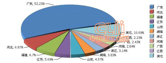 图4 2013年1~9月全国陶瓷行业累计出口额地区占比情况