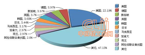 图6 2013年1~9月全国陶瓷行业累计出口额目的地占比情况
