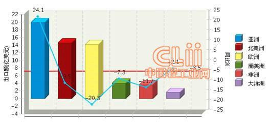 4、各大洲出口情况分析