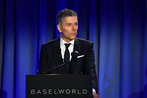 巴塞尔城市州议会议员Christoph Brutschin先生向来宾表示了热烈的欢迎,并代表巴塞尔市政府和巴塞尔乡政府向来宾表达了良好的祝愿。他还将展会比作手表,称“类似于钟表的制作,巴塞尔世界钟表珠宝博览会这件大师作品,组委会倾注了大量的,高精度的,标准的精力和热情”。