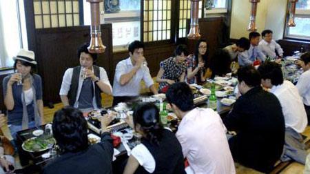 韩国人不仅饮酒的绝对数量大,还因此形成了别具韩国特色的酒文化,企业酒宴就是酒文化界的一朵奇葩。大多数韩国公司每月至少举办一次酒宴,有时甚至每周都有。酒宴上会和同事一起吃饭,并喝上几轮不同品种的酒。