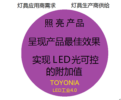 上图分析看出,生产灯具和应用灯具仅有的交叉点只体现在照亮产品或空间的这个点上,也就是说,现在LED灯具绝大多数纯粹只用来照亮物品。LED光源之所以可以取代传统光源。最核心的价值并不表现在节能上,而是在光的可控性上。不同的产品有着不同的光色需求,充分利用LED光源光可控的特性,两者结合起来制造出能展示产品最佳效果的灯具,这才是LED光源与众不同的价值。正是基于这一点,東洋公司早在2012年就成立独立的技术部门,专注于LED光可控技术应用研发。近期,東洋(TOYONIA)旗下的完全采用个性化及信息化模式生产的专业级YOLL MD系列COB光源将登陆中国市场,率先在国内LED行业开启工业4.0时代。