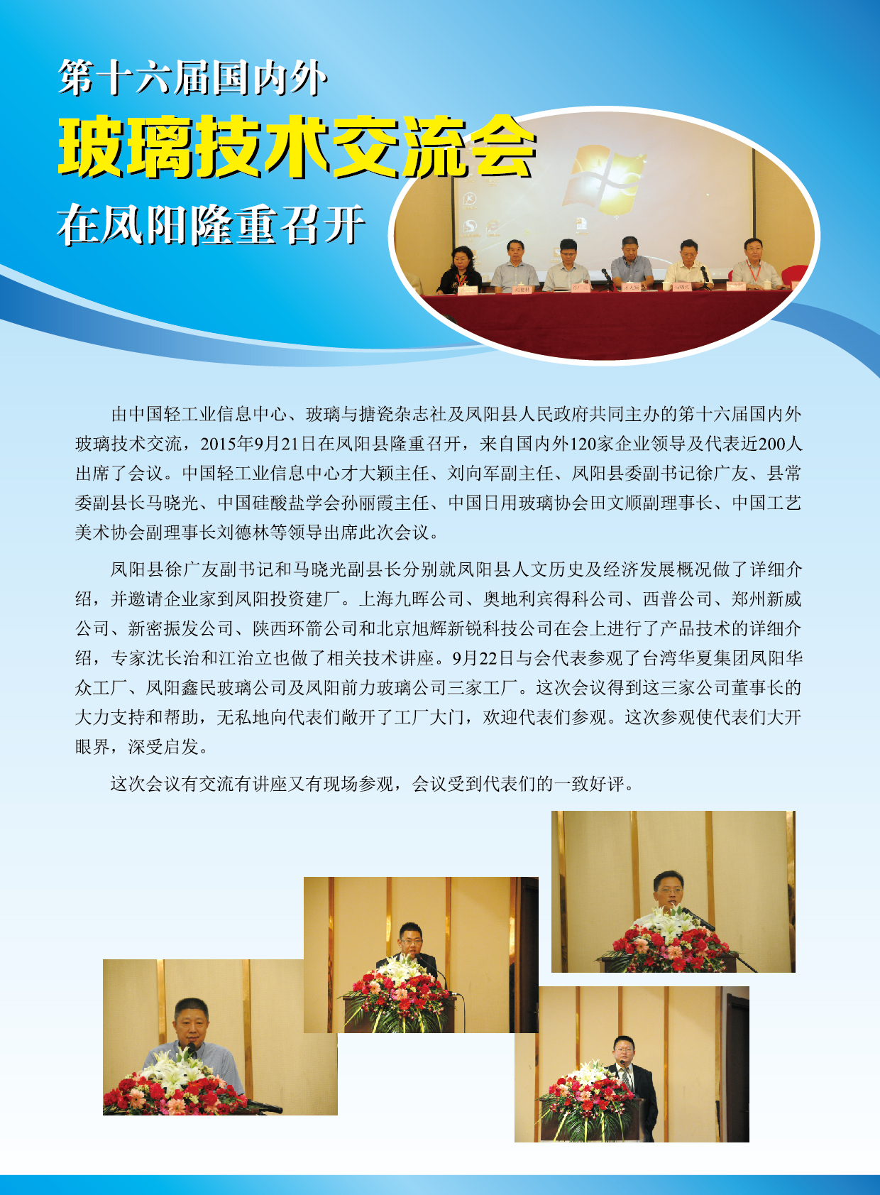 第十六届国内外玻璃技术交流会在凤阳隆重召开