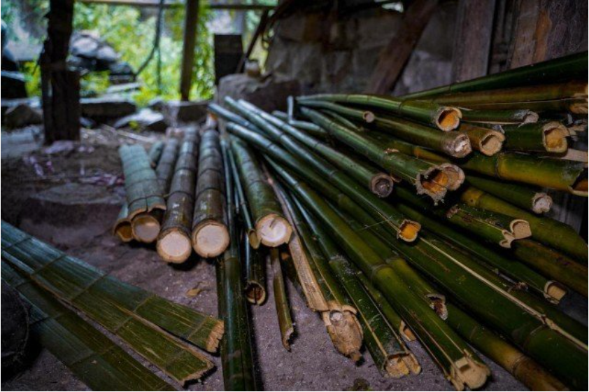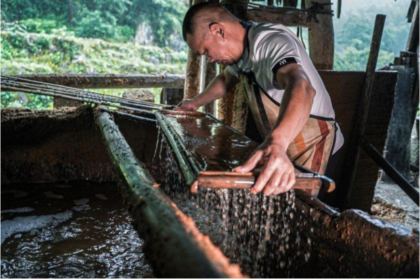 每逢12月前后,纸厂便开始采集细竹,将砍回的新鲜竹子,先捣碎在石灰水里浸泡,从12月一直泡到来年4月,经过数个月的化学反应,竹子被浸泡得松软,之后就利用水车的动力将其放入大石筒中轧碎,轧碎的竹子在放有粘合剂的池子里浸泡一天。之后,再经过抄纸、压纸、揭纸、晒纸等多道工序,即可制作完成。