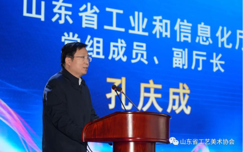 孔庆成在致辞中,肯定山东工艺美术行业助力传统工艺美术融入数字发展新时代作出的重要贡献,寄望“云上手造”和“数字工美”融合,从坚持工艺美术产业高质量发展、注重示范引领推进行业数字化转型、强化人才支撑夯实产业数字化基础三个方面融合赋能。打造成为推动我省文化创意产业高质量发展的金字招牌,为塑造情怀博大的山东文化形象,建设新时代数字化强省注入强劲动力。