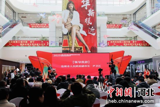 中国·肃宁第22届国际皮草交易会暨裘皮服装购物节开幕式现场。 刘巨雷 摄