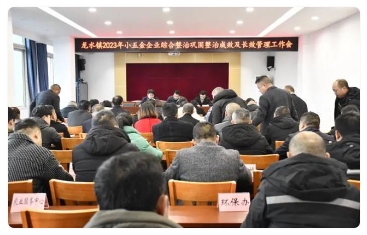 2018年,龙水镇开展小五金企业综合整治专项行动,成立了小五金企业综合整治领导小组,联合区经信委、区生态环境局等单位一同围绕“小五金整治”问题进行综合研判,确定整治方案。