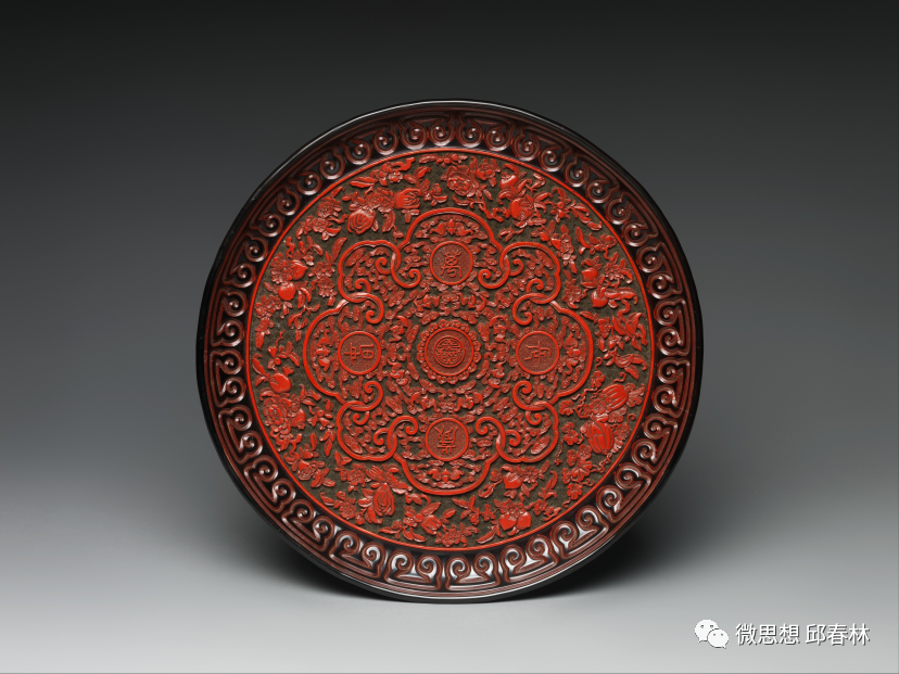 清乾隆(1736–1795) 蝙果纹雕漆托盘 直径36.8厘米 大都会艺术博物馆藏