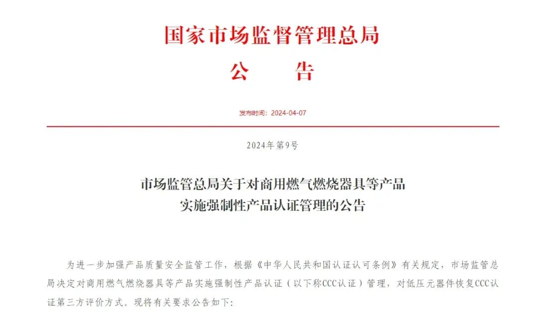 为进一步加强产品质量安全监管工作,根据《中华人民共和国认证认可条例》有关规定,市场监管总局印发《市场监管总局关于对商用燃气燃烧器具等产品实施强制性产品认证管理的公告》,明确对防爆灯具及控制装置实施CCC认证管理,并提出以下要求。