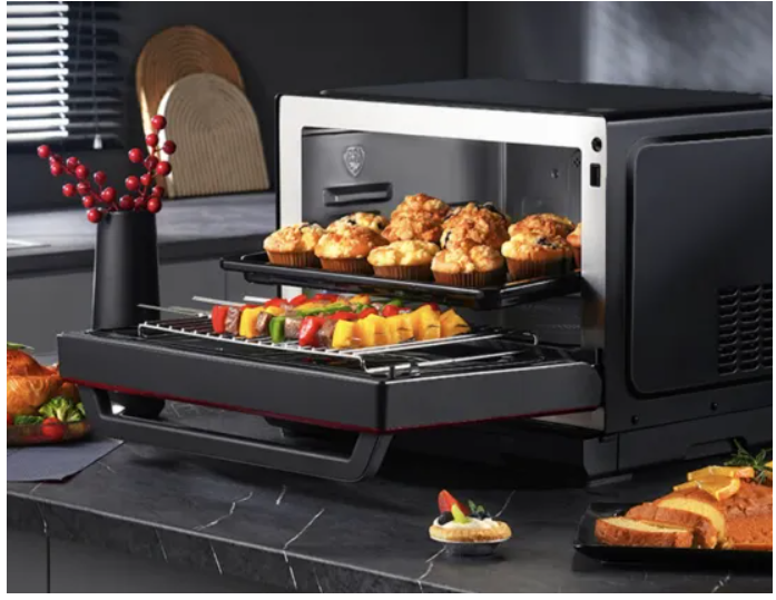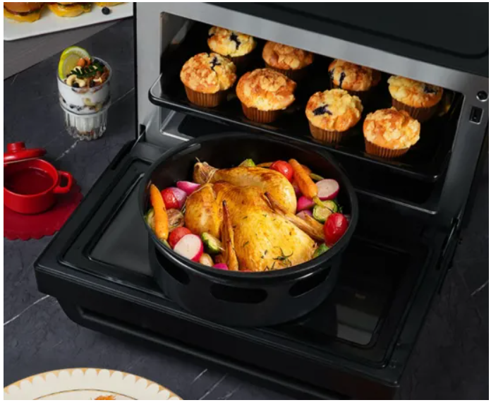顾名思义,中国红2023格兰仕微蒸烤炸一体机集合了微波、蒸汽、烧烤、烘焙、空气炸、解冻等多项烹饪功能于一身。一台顶多台,节约了用户厨房空间,仅需“四分之一平米”,即可配齐厨房“新四件套”。