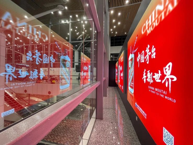 此次茅台品牌形象广告所选择的五个投放点位,位于吉隆坡国际机场国际出发和到达区域的核心位置,能够很好地覆盖马来西亚本土旅客和往来马来西亚的国际旅客。本次投放的广告画面以鲜明的“中国红”为主色调,配以茅台酒瓶和“中国茅台 香飘世界”的标语,对茅台企业实力和品牌形象的展示,以及茅台品牌国际知名度的提升有着重要的意义。