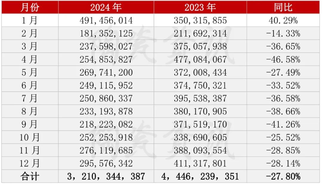 2024年,我国陶瓷砖出口合计32.10亿美元,同比下降27.80%。(ps:陶瓷砖月度数据时有波动,但海关数据确系如此)