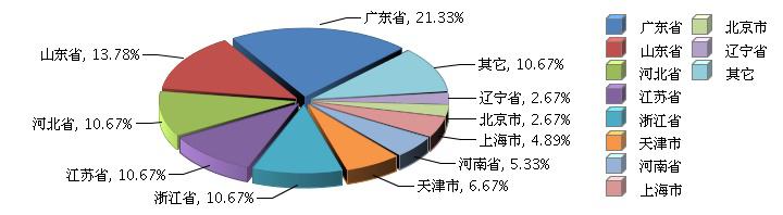 上图: 2014年2月全国乐器制造行业企业数地区占比情况