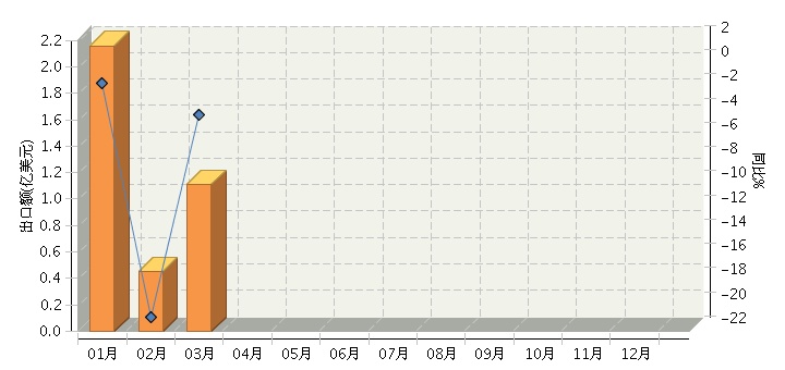 根据海关总署发布数据,2014年1~3月,全国毛皮及其制品行业累计完成出口额3.72亿美元,同比增长-5.12%。其中3月份完成出口额1.11亿美元,同比增长-4.16%。2014年全国毛皮及其制品行业月度出口额及同比增长趋势如下图所示。