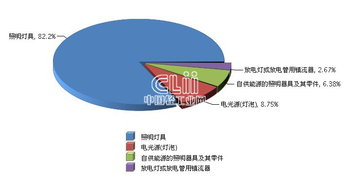 2014年1~3月照明行业累计出口额商品结构分布情况