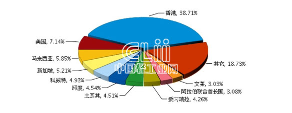 2014年1~3月全国弧光灯累计出口额贸易国占比情况