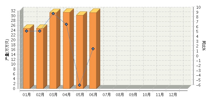 根据国家统计局公布数据,2014年1~6月,全国原电池及原电池组(折R20标准只)行业累计完成产量179.50亿只,同比增长4.35%。其中: 5月份完成产量30.19亿只,同比增长-5.29%;6月份完成产量31.32亿只,同比增长2.19%。2014年全国原电池及原电池组行业月度产量及同比如下图所示。