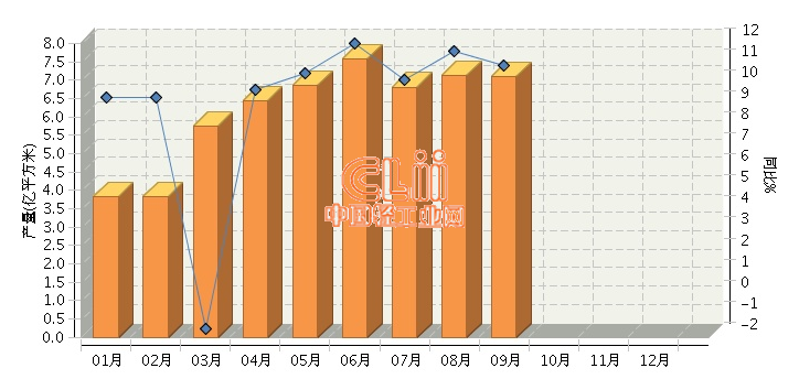 据国家统计局数据显示,2014年1~9月,全国瓷质砖累计完成产量56.55亿平方米,同比增长10.92%。其中:9月份完成产量7.09亿平方米,同比增长10.94%。2014年1~9月全国陶质砖月度产量及同比如下图所示。