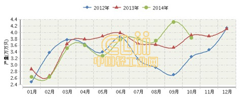 2014年全国荧光灯行业连续三年月度产量对比