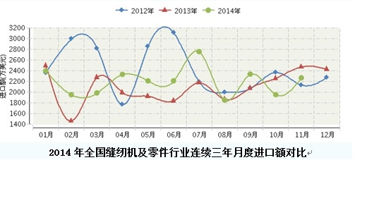 2014年11月全国缝纫机及零件行业进口额月度走势