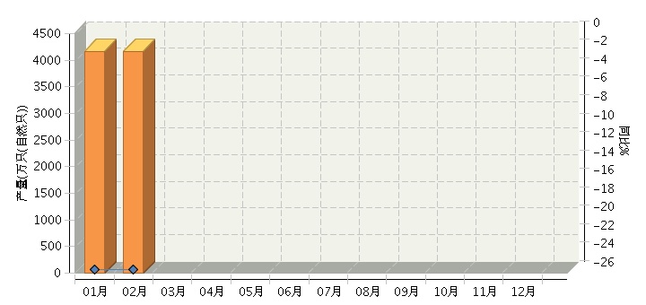 根据国家统计局公布数据,2015年1~2月全国碱性蓄电池行业累计完成产量同比增长-25.64%。其中:2月份完成产量同比增长-25.64%。2015年全国碱性蓄电池行业月度产量及同比如下图所示。