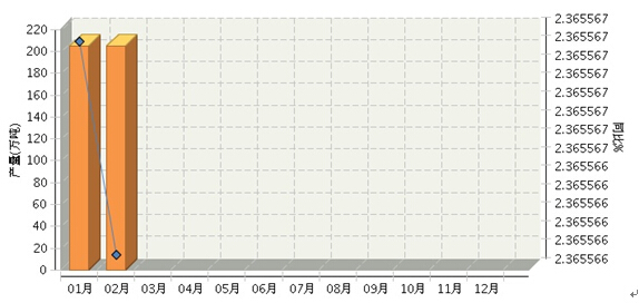 2015年1~2月我国乳制品累计产量同比增长2.37%