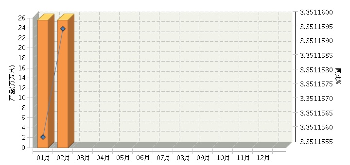 根据国家统计局公布数据,2015年1~2月,全国原电池及原电池组(折R20标准只)行业累计完成产量同比增长3.35%。其中:2月份完成产量同比增长3.35%。2015年全国原电池及原电池组行业月度产量及同比如下图所示。