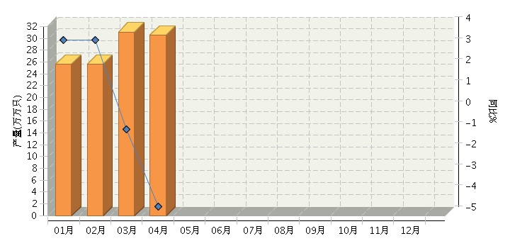 根据国家统计局公布数据,2015年1~4月,全国原电池及原电池组(折R20标准只)行业累计完成产量同比增长-0.64。其中:4月份完成产量同比增长-4.56%。2015年全国原电池及原电池组行业月度产量及同比如下图所示。