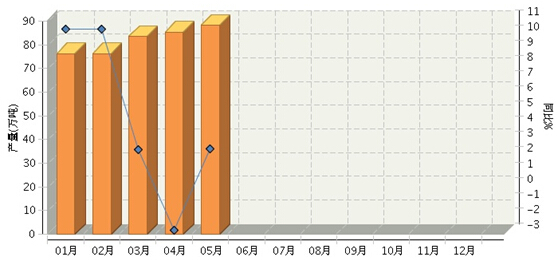根据国家统计局公布数据,2015年1月~5月,全国罐头行业累计完成产量406.70万吨,同比增长1.02%。其中:1月份完成产量76.22万吨,同比增长10.47%;2月份完成产量76.22万吨,同比增长10.47%;3月份完成产量83.43万吨,同比增长2.53%;4月份完成产量85.34万吨,同比增长-2.74%;5月份完成产量88.14万吨,同比增长2.63%。2015年月度数据走势及同比增长情况如下图所示。