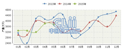 2015年河北电光源行业连续三年月度产量对比