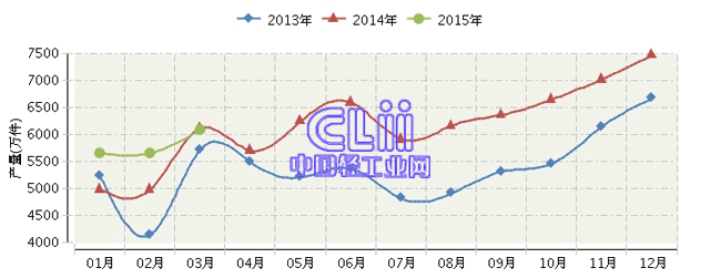 全国家具行业连续三年月度产量对比