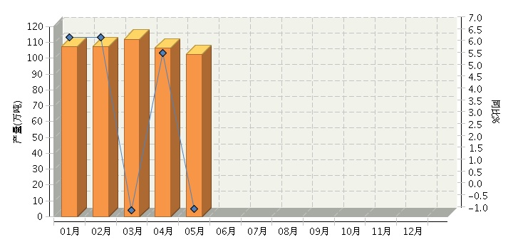 根据国家统计局公布数据,2015年1月~5月,全国合成洗涤剂行业累计完成产量494.52万吨,同比增长3.87%。其中: 2月份完成产量107.33万吨,同比增长6.54%;3月份完成产量112.03万吨,同比增长-0.73%;4月份完成产量106.25万吨,同比增长5.89%;5月份完成产量102.36万吨,同比增长-0.69%。2015年月度数据走势及同比增长情况如下图所示。