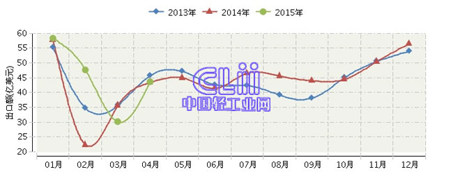 2015年全国家具行业月度出口额及同比