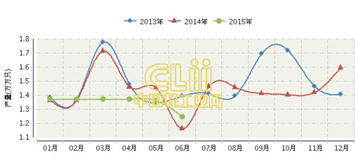2015 年1~6月,江苏白炽灯泡累计完成产量8.10亿只,同比增长-4.35%。其中: 6月份完成产量1.25万万只,同比增长6.91%。
