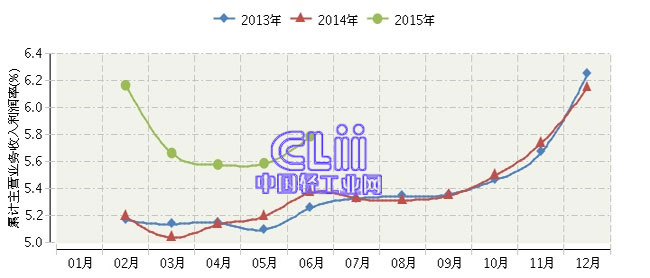 2015年1~6月全国家具行业累计主营业务收入利润率为5.79%