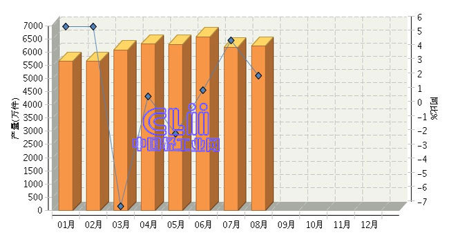 根据国家统计局公布数据:2015年1~8月,全国家具行业累计完成产量49664.04万件,同比增长1.21%。其中:8月份家具产量同比增长2.47%。