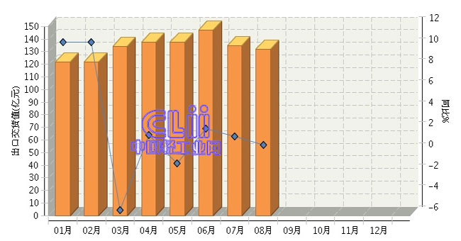 根据国家统计局公布数据:2015年1~8月,全国家具行业的累计出口交货值为1078.85亿元,同比增长2.05%。其中:8月份出口交货值同比增长0.75%。