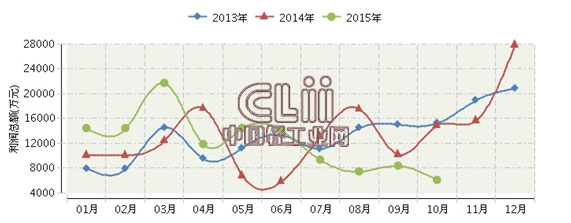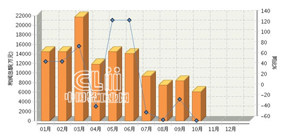 2015年1~10月,上海照明行业累计利润总额122,409.90万元,同比增长1.84%。其中: 10月份利润总额6100.3万元,同比增长-59.14%。