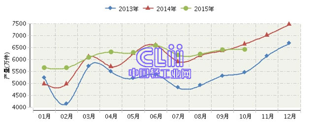 根据国家统计局公布数据:2015年1~10月,全国家具行业累计完成产量62548.18万件,同比增长0.97%。其中:10月份家具产量同比下降2.39%。