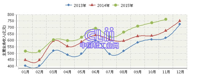 - 2015年1~11月家具行业主营业务收入2016/3/22 9:56:11