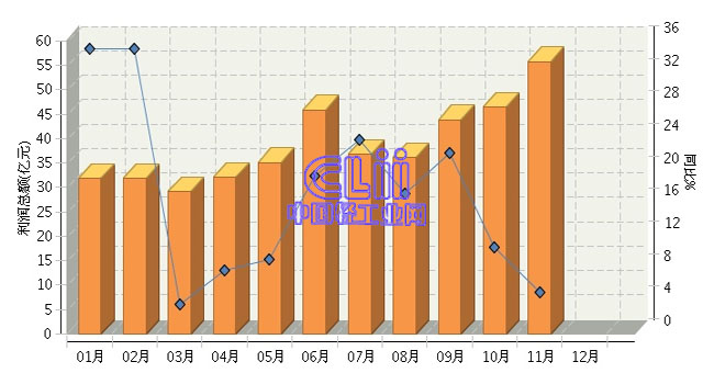 2015年1~11月全国家具行业利润总额累计同比增长15.75%
