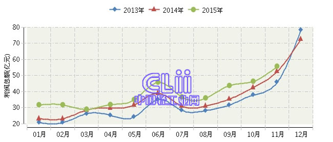 根据国家统计局公布数据:2015年1~11月,全国家具行业累计实现利润总额424.84亿元,同比增长15.75%。其中:11月份利润总额同比增长5.15%。