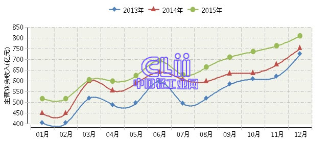 全国家具行业连续三年月度主营业务收入对比